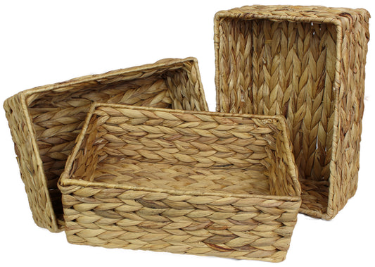 Small water hyacinth rectangular baskets in natural colour.