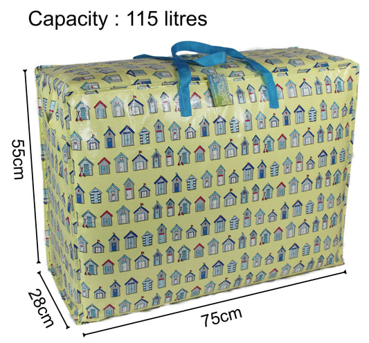 Blue Beach Huts Print Laundry Storage Bag